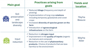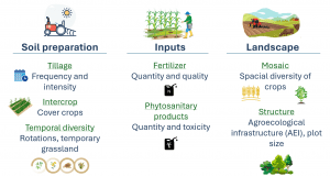 The method consists of specifying how these categories are applied to crops of interest: low/high tillage, absence of hedges, half of the soil covered, etc.