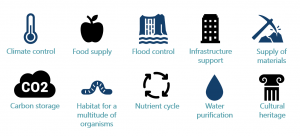 Figure 1 : Ecosystem services provided by soils, Sources: ADEME infographic, 2024