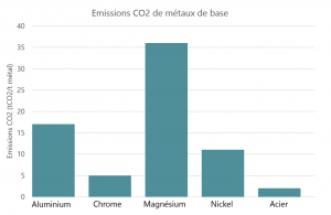 Les émissions CO2 de différents métaux de base sont développées en Figure 1 :