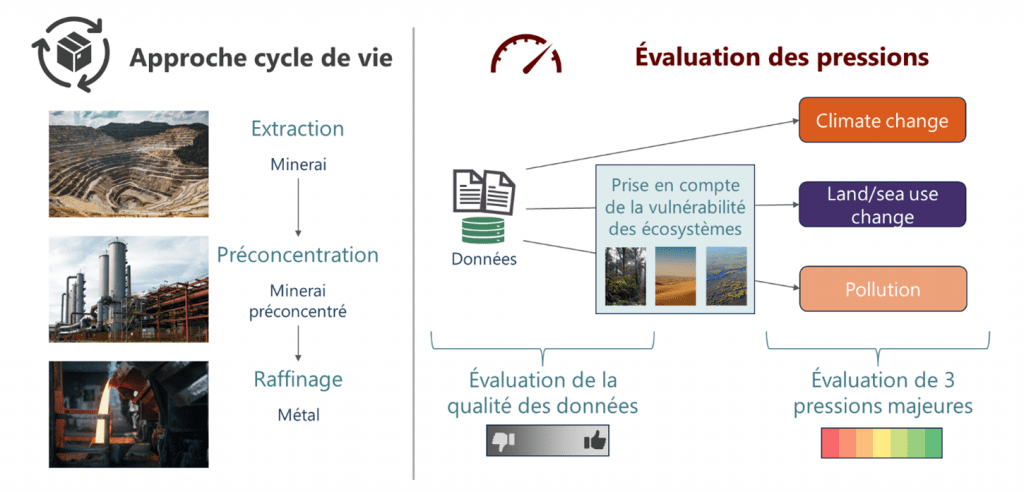 Elle prend en compte l’ensemble du processus, de l’extraction à la production secondaire (recyclage), pour évaluer le Biodiversity Impact Score (BIS) de chaque métal.